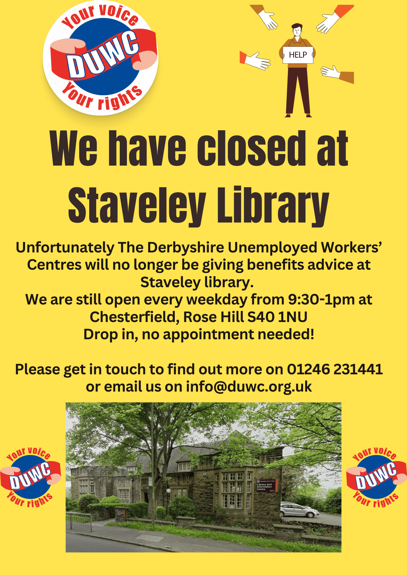 We offer drop-in advice sessions at all the locations below. These sessions operate on a first come, first served basis, offering advice, help with forms, and challenging adverse decisions regarding your benefits and credits. We are also a gateway to other services, so if we can’t help you with what you need, we will put you in touch with someone who can!